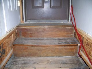Trish got a great deal on a nice old staircase (for our basement) at an estate sale. Trouble was, it wasn't quite tall enough or steep enough |