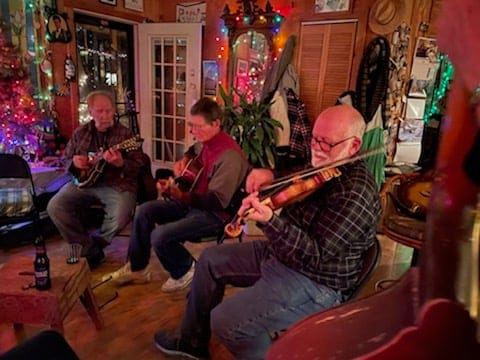 <<Trish playing with Oklahoma Mike at a posh bison shingig.