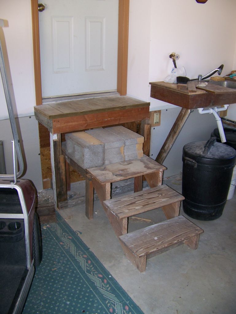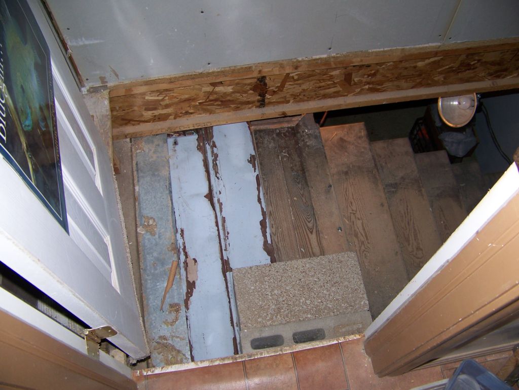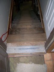 Trish got a great deal on a nice old staircase (for our basement) at an estate sale. Trouble was, it wasn't quite tall enough or steep enough |