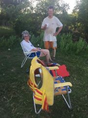 Relaxing after a kayaking expedition with Lucy this summer.>> |